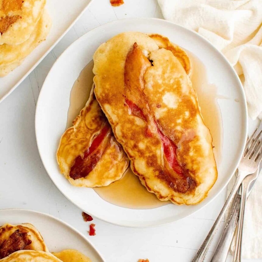 Jump to Recipe 5 from 1 rating 20 30 50 Panquecas de bacon são panquecas leves e fofas cozidas com uma fatia de bacon crocante, salgado e defumado bem no meio. São uma combinação deliciosa de salgado e doce que se tornará instantaneamente favorita!Ter seu bacon ao lado das panquecas…