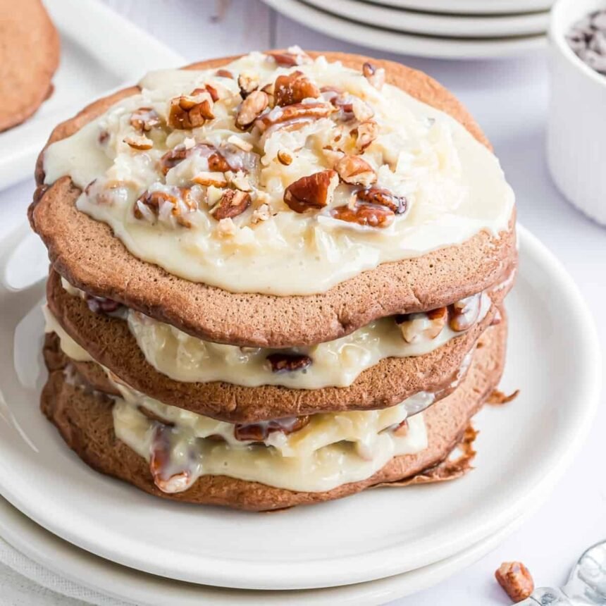 Jump to Recipe 5 from 3 rating 10 25 35 Estas Panquecas de Chocolate Alemão são um café da manhã decadente que todos vão adorar! Panquecas de chocolate são cobertas com uma cobertura pegajosa de coco e nozes pecãs, lembrando a receita clássica de bolo. Quando sua manhã começa com…