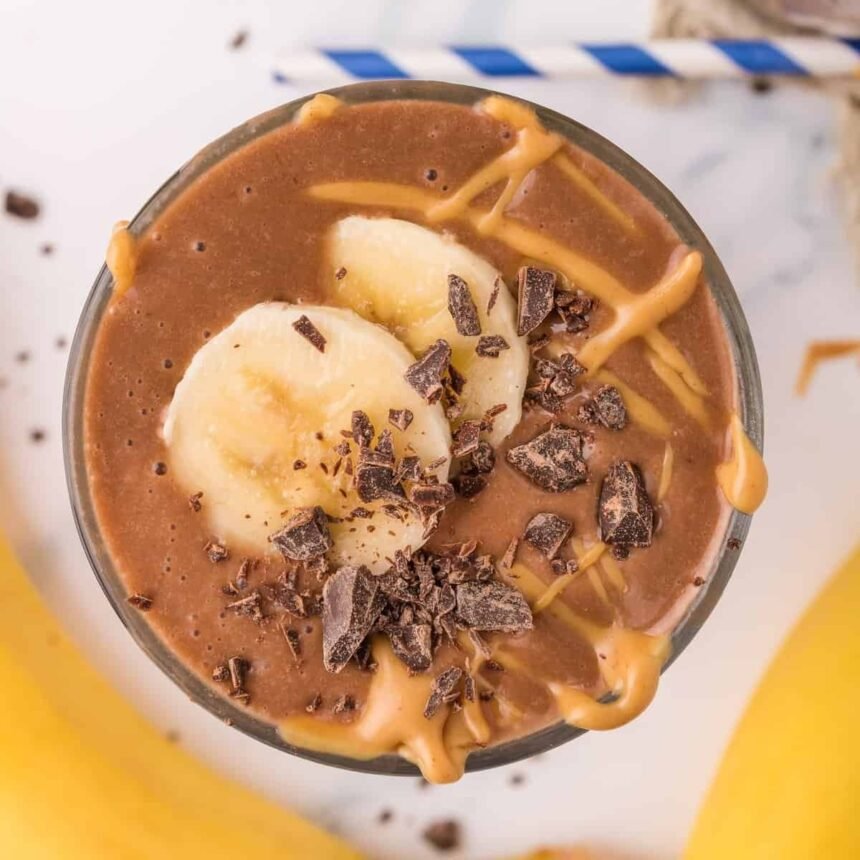 Jump to Recipe 5 from 2 rating 6 6 Para um café da manhã saudável que parece uma sobremesa, você não pode vencer este smoothie de chocolate com manteiga de amendoim! Você vai pensar que está bebendo um milkshake, mas é engrossado e adoçado com bananas congeladas. Não todos nós…