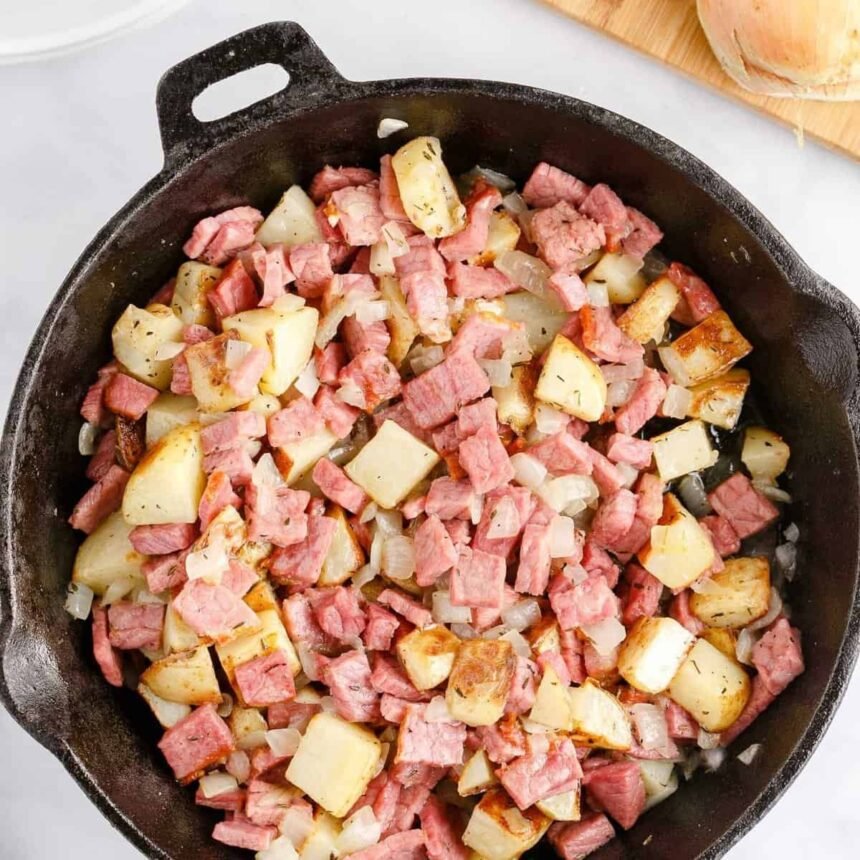Jump to Recipe Corned beef hash is a hearty skillet loaded with buttery herbed potatoes, sautéed onions, and salty corned beef. Add a fried egg on top for the ultimate savory breakfast! On paper, there is nothing about corned beef that should make it delicious. I mean: packaged shredded beef…