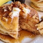 As panquecas de banana ficam grossas, fofas e saborosas, tornando-as um café da manhã farto e satisfatório. Você pode cobri-las com um pouco de xarope e bananas fatiadas extras para maximizar a doçura da banana. Elas também ficariam deliciosas com glaze de limão, xarope de chocolate, molho de caramelo caseiro ou chantilly caseiro.
