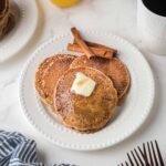As panquecas de cannoli são fofas, macias e repletas de canela e pedaços de chocolate! Cobertas com um recheio cremoso de ricota com flocos de mais mini pedaços de chocolate, elas são como as do IHOP, só que melhores!