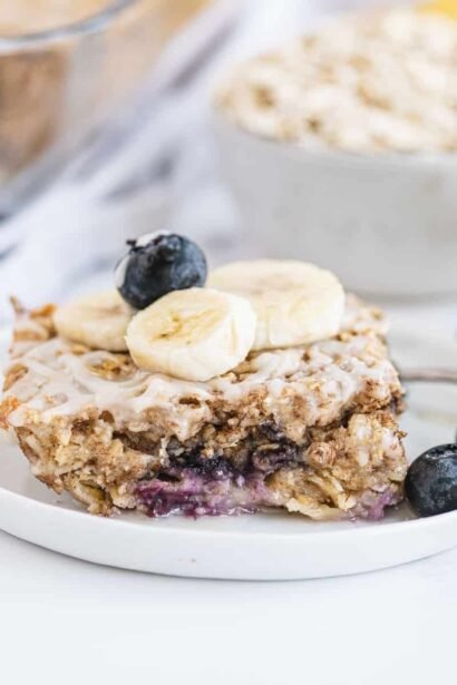 Aveia Assada com Banana e Mirtilo