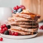 Una vez completamente enfriados, se conservarán en el refrigerador en un recipiente hermético o en una bolsa Ziploc por hasta 3 días o en el congelador por hasta 3 meses. Para congelar panqueques individuales que no se congelen en grupos, mantenlos en una bandeja para hornear y congélalos rápidamente solo hasta que estén sólidos. Luego agrégales al recipiente hermético.